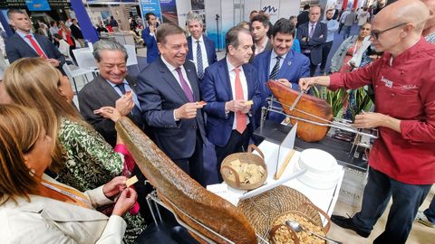 El ministro de Pesca italiano, Francesco Lollobrigida, acompaña durante los tres días de feria al tejido empresarial. Hacia el mediodía comen en el recinto como lo haría un italiano en su vida cotidiana: a mesa puesta y en copa de cristal. El mandatario defiende la necesidad de aplicar mecanismos para reactivar un sector que sufre un descenso de las ventas a causa de la inflación.